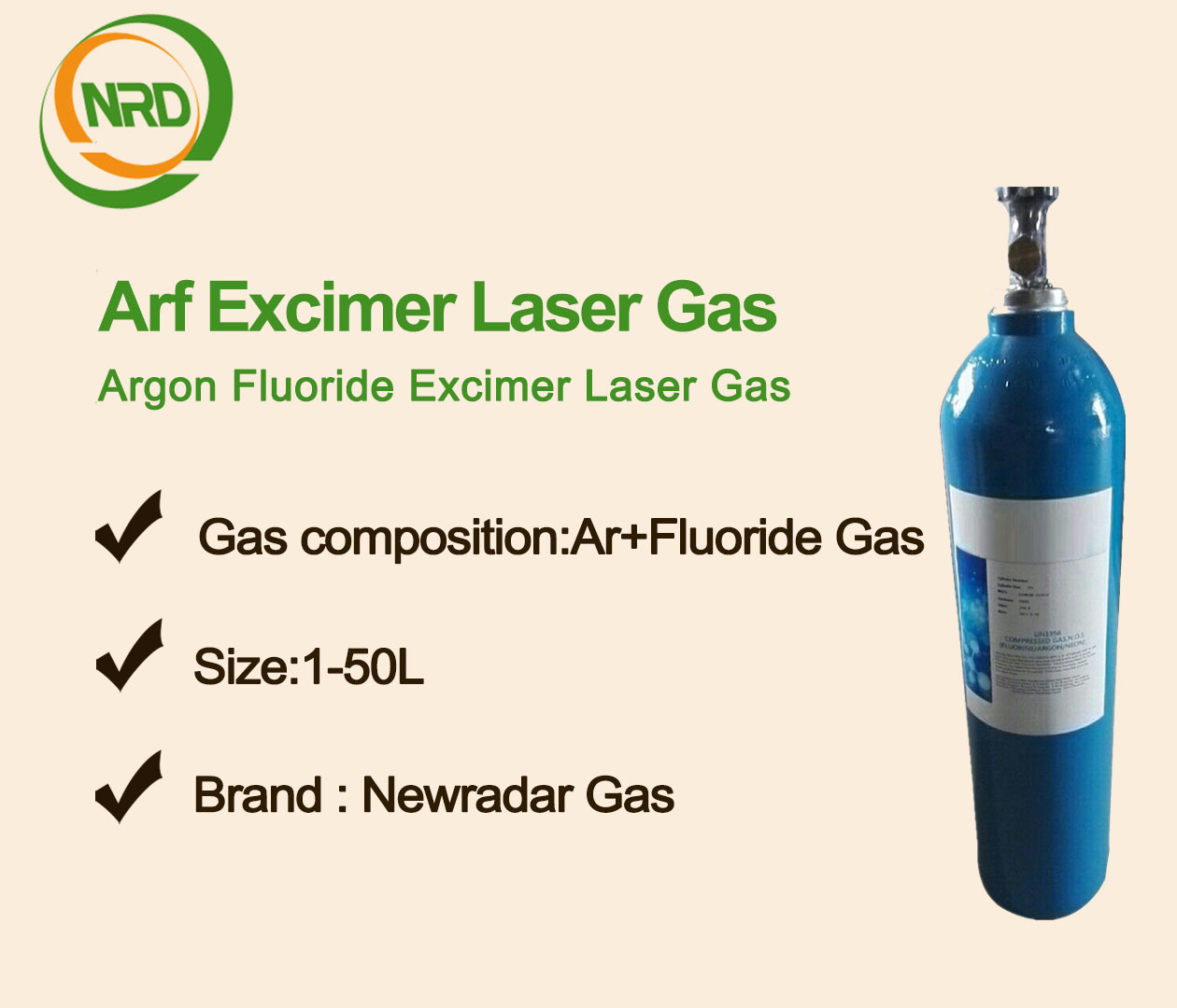 | Καθαρότητα αερίου συσχέτισης | F2, 99.9% Ar, 99.9999% He, 99.9999% Ne, 99.9999% HCl, Ηλεκτρονικής ποιότητας Kr, 99.999% Xe, 99.999% O2, 99.999% H2, 99.999% |