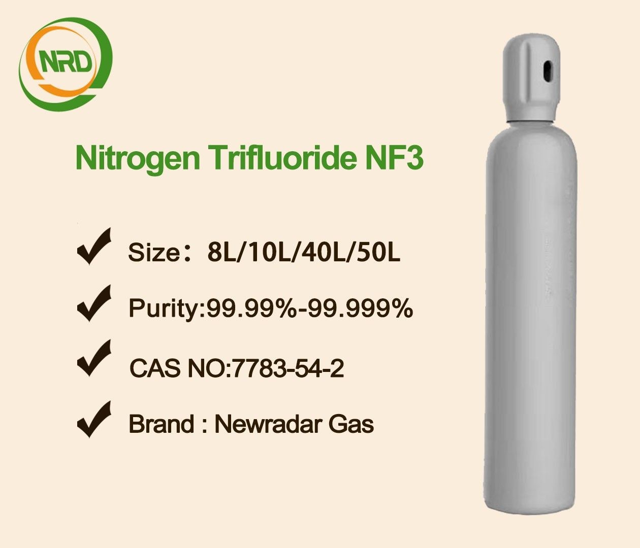 Trifluoride αζώτου (NF3) έχει χρησιμοποιηθεί ευρέως στην ηλεκτρονική βιομηχανία, τον ημιαγωγό και την ηλιακή βιομηχανία κ.λπ. φωτογραφία-ηλεκτρικής ενέργειας που είναι ένα καλό αέριο χαρακτικής και καθαρισμού με τα πλεονεκτήματα καμίας παραμονής, υψηλής ταχύτητας καθαρισμού και εύκολος να αποσυνθέσει.
